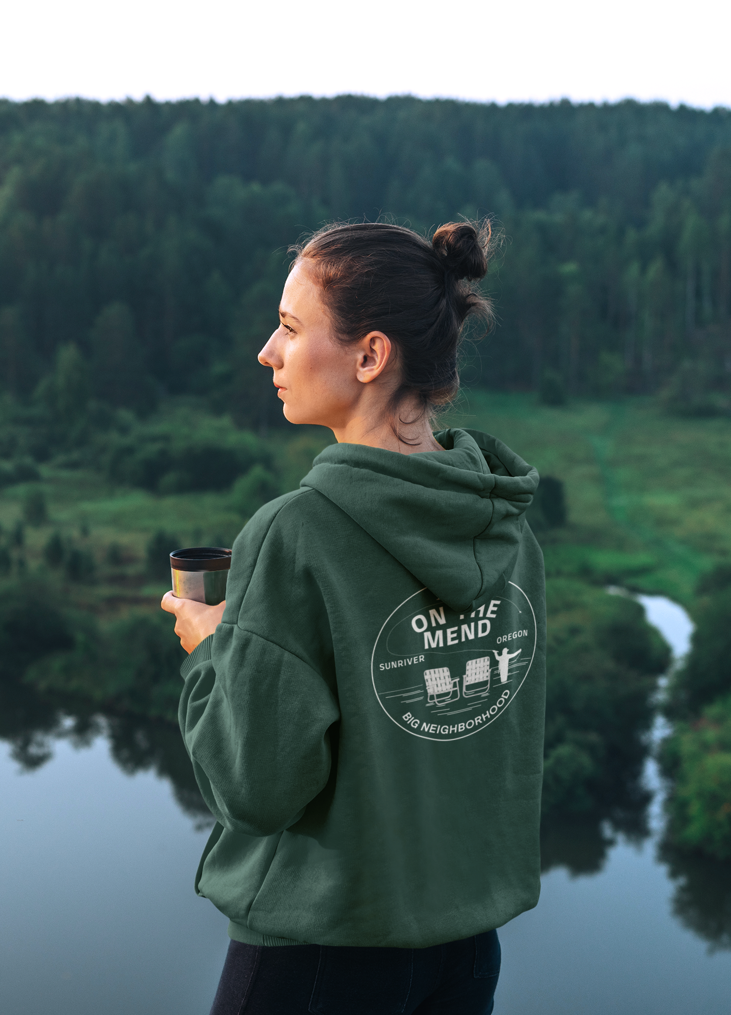 Big Neighborhood is donating 50% of our profits from every Neighborhoodie to On The Mend, dedicated to supporting individuals grappling with PTSD and other mental health challenges through the healing power of fly fishing. These programs blend outdoor adventure with mental health support to provide nature-based healing.